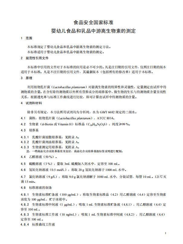 | 2 | GB 5413.15-2010;GB 5413.17-2010;GB 5413.19-2010 | 煙酸和煙酰胺的測定;游離生物素的測定;泛酸的測定 | 植物乳桿菌 | Lactobacillus plantarum | ATCC8014 |