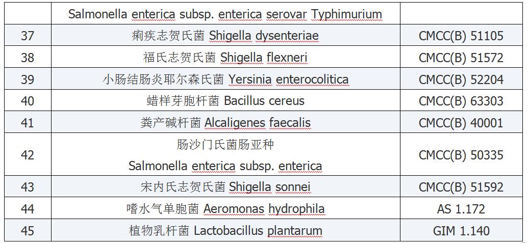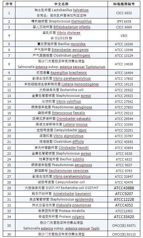 | 序號 | 標準編號 | 標準名稱 | 菌株中文名稱 | 菌株拉丁名稱 | 菌株編號 |