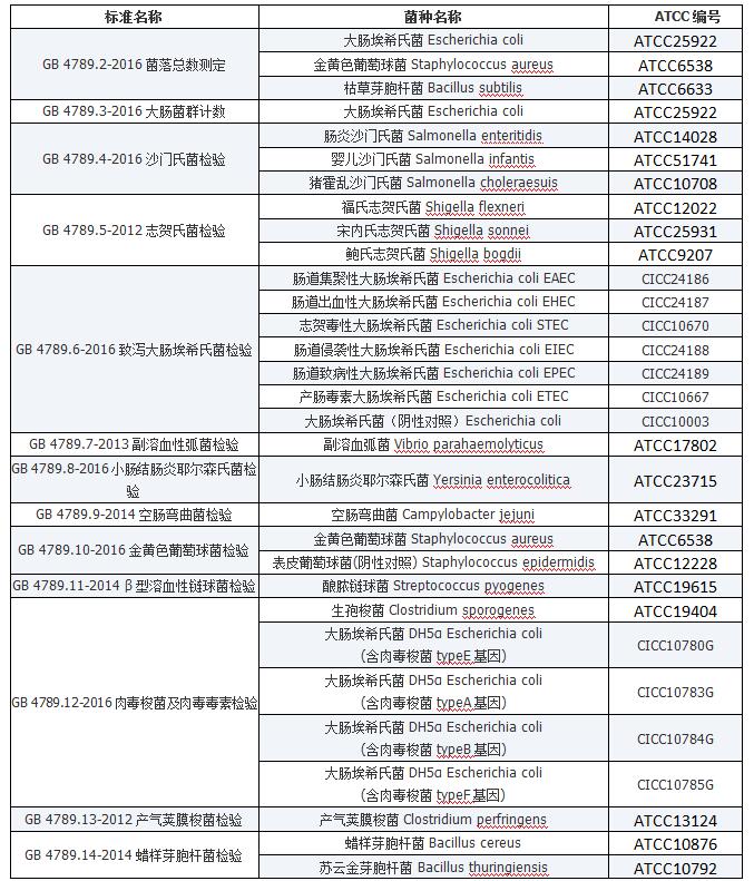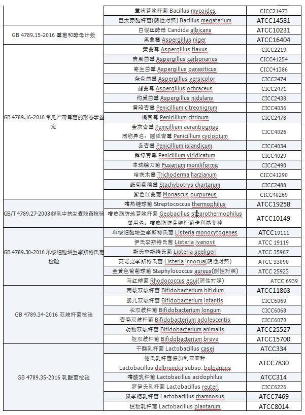 GB 4789 食品安全國家標準 食品微生物學(xué)檢驗 標準菌株推薦