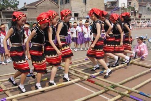 在福建閩南漳浦,在初三當(dāng)?shù)氐漠屪逋麜?huì)用喜慶的竹竿舞來迎接八方來客。當(dāng)?shù)貜某跞_始,用這種載歌載舞的方式來慶祝新年。因?yàn)樵陂}南初一是要互相拜年,初二是女婿日,女兒女婿都要回娘家,所以畬族人非常好客,他們從初三開使用這樣的竹竿舞表達(dá)歡樂的心情。